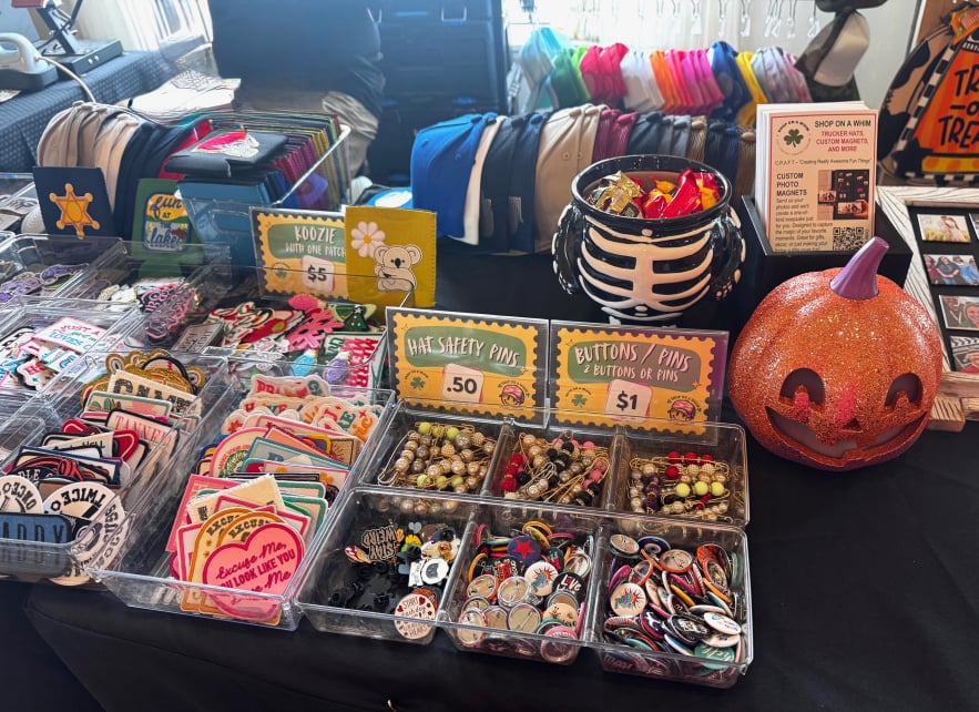 From trucker hats, caps and bags with a variety of patches and accessories. Stickers for cups and laptops. Hand painted door hangers, banners and clipboards. Custom photo magnets and more.